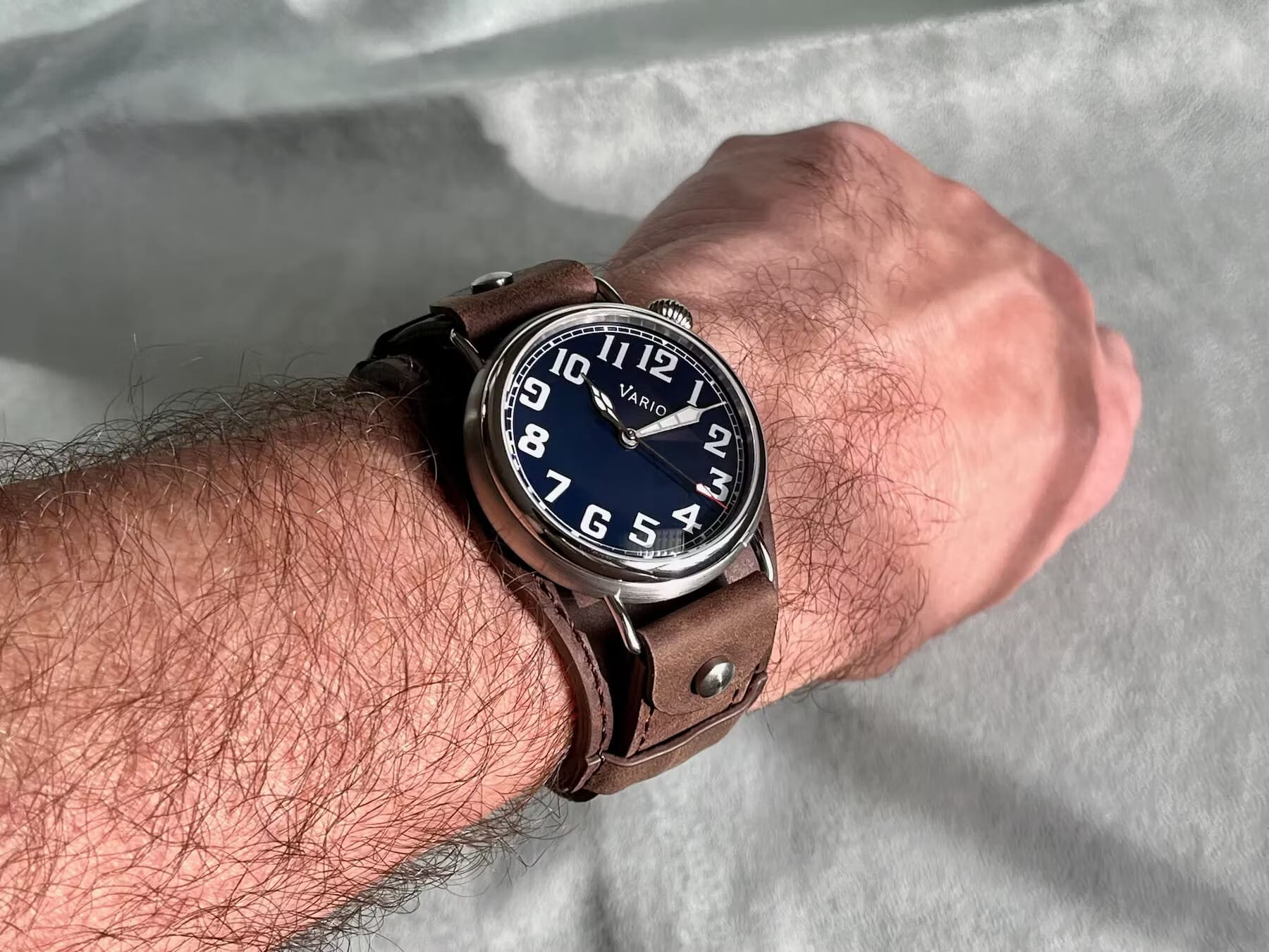 The Vario 1918 Pilot is technically a pilot watch, but shares the clear dial and robust build that drivers need. The vintage aesthetic works well on the wrist whether you're behind a wheel or just appreciate the style.