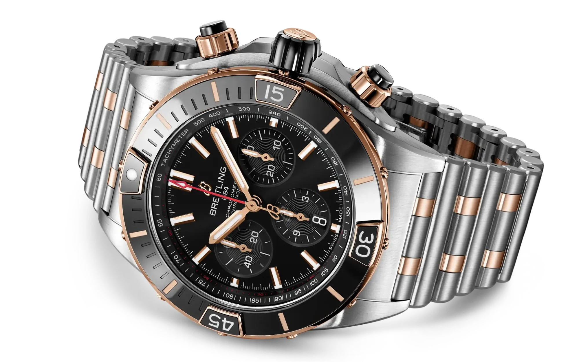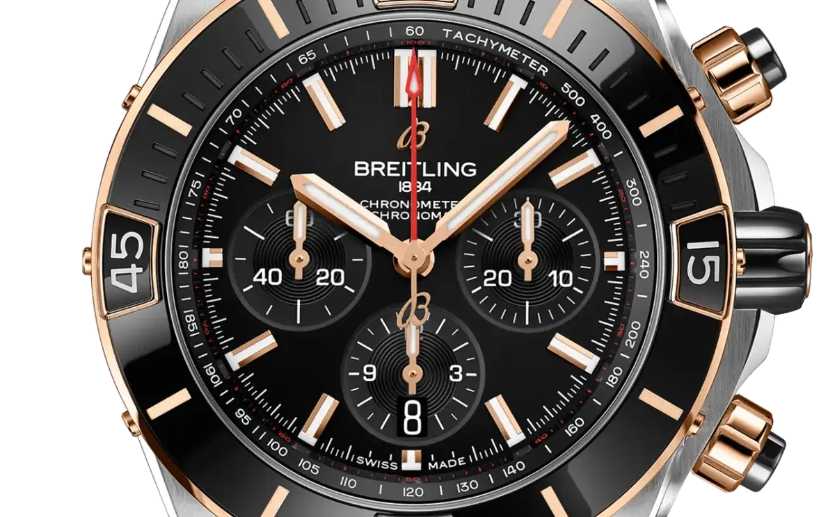 The Chronomat became the first Breitling to house the in-house Caliber B01 when it launched in 2009. Under CEO Georges Kern, who took over in 2017 after the Schneider family sold the company, the Chronomat was redesigned in 2020 with a return to the 1984 design codes. The Rouleaux bracelet, which had been discontinued in 1996, came back. The Super Chronomat followed in 2021 as the bigger, bolder variant, adding ceramic inserts on the bezel, pushers, and crown for the first time in the collection's history.