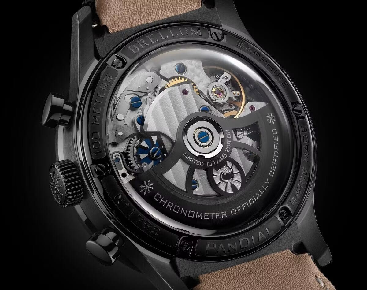 The Brellum Pandial Bicompax Black DLC Ti Chronometer is a unique blend of modern materials, strong mechanics, and independent watchmaking. It's lightweight, accurate, and visually striking. The typography choices and lack of a ceramic bezel are small drawbacks, but they don't take away from the overall package.
