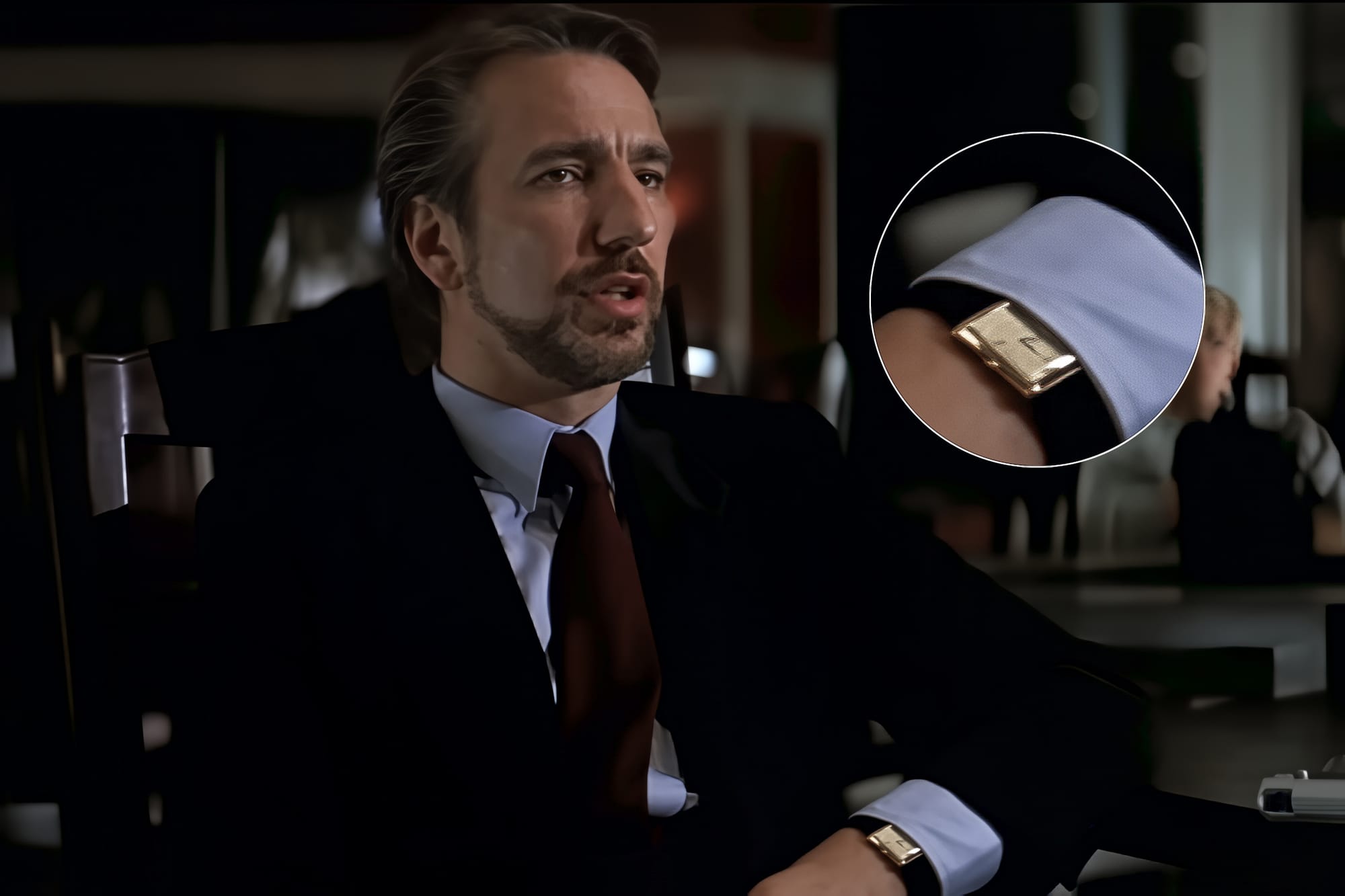 Interestingly, the Cartier Tank was a last-minute choice. According to screenwriter Steven E. de Souza, the original script called for all twelve terrorists to wear identical black TAG Heuer watches, with a deleted scene showing them synchronizing their timepieces before entering Nakatomi Plaza. McClane was supposed to discover this detail by examining dead terrorists, eventually using it to identify Gruber when he pretended to be a hostage. The scene was cut, and Rickman's character received the Tank instead—a far better choice that emphasized Gruber's European sophistication and separated him visually from his crew.