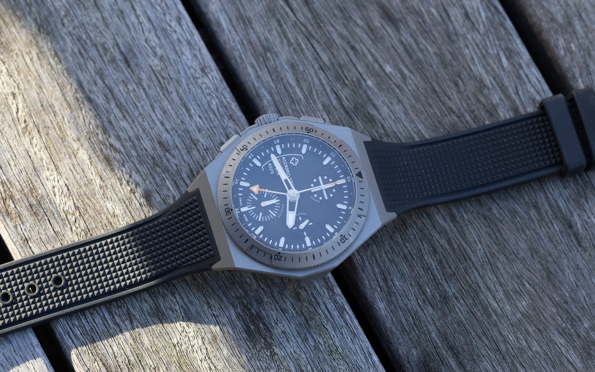The Milgraph itself went public at Geneva Watch Days 2024 as a left‑hand ("destro") GMT chronograph with a Grade‑5 titanium case, a glove‑friendly QuadGrip bezel, and a quiet visual language built for legibility rather than shine. The launch watch ran 100 m water resistance and 50 pieces for the year - good luck getting one. For 2025, Micromilspec applied a meaningful engineering bump: 200 m water resistance and 75 pieces in the second edition. That spec lift alone hints at the brand's cadence: iterate based on field testing, not focus groups.