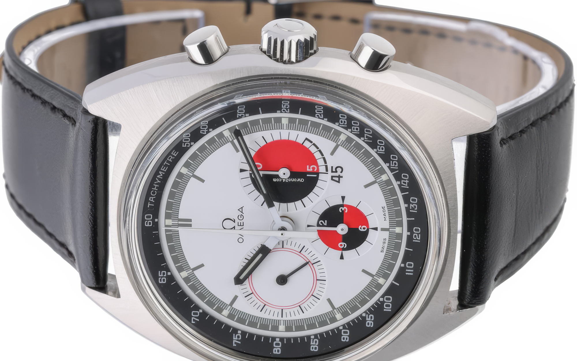 I found this watch at a dealer in London. It wasn't what I went looking for. The dial stopped me: white field, black and red subdials split down the middle. Despite a production year of 1970, the condition was excellent, so I bought it.