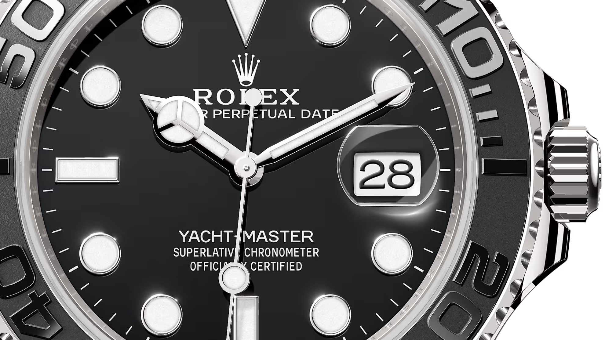 At 42 mm, the white gold case works well for me. The black ceramic bezel is matte with raised, polished black numerals. Unlike the Submariner, this bezel is bidirectional and quiet, meant more for calculating sailing intervals than diving. I really wish it clicked. The crown guards and lines are familiar Rolex shapes, but the black-on-black combination gives it a stealthier, more modern vibe.