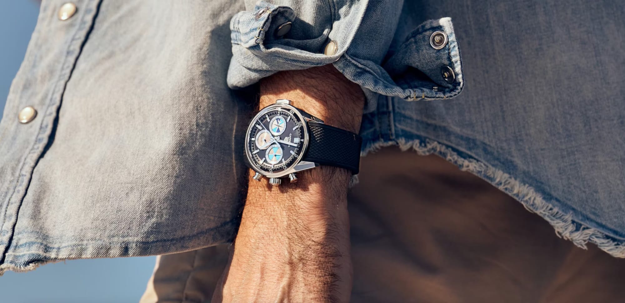 The fully polished case, with Carrera's angular lugs, looks both dressy and sporty. Despite being a chronograph with a unique complication, the watch maintains a manageable thickness, fitting well under cuffs for daily wear. It's not overly hefty, making it versatile enough to wear both casually and semi-formally.